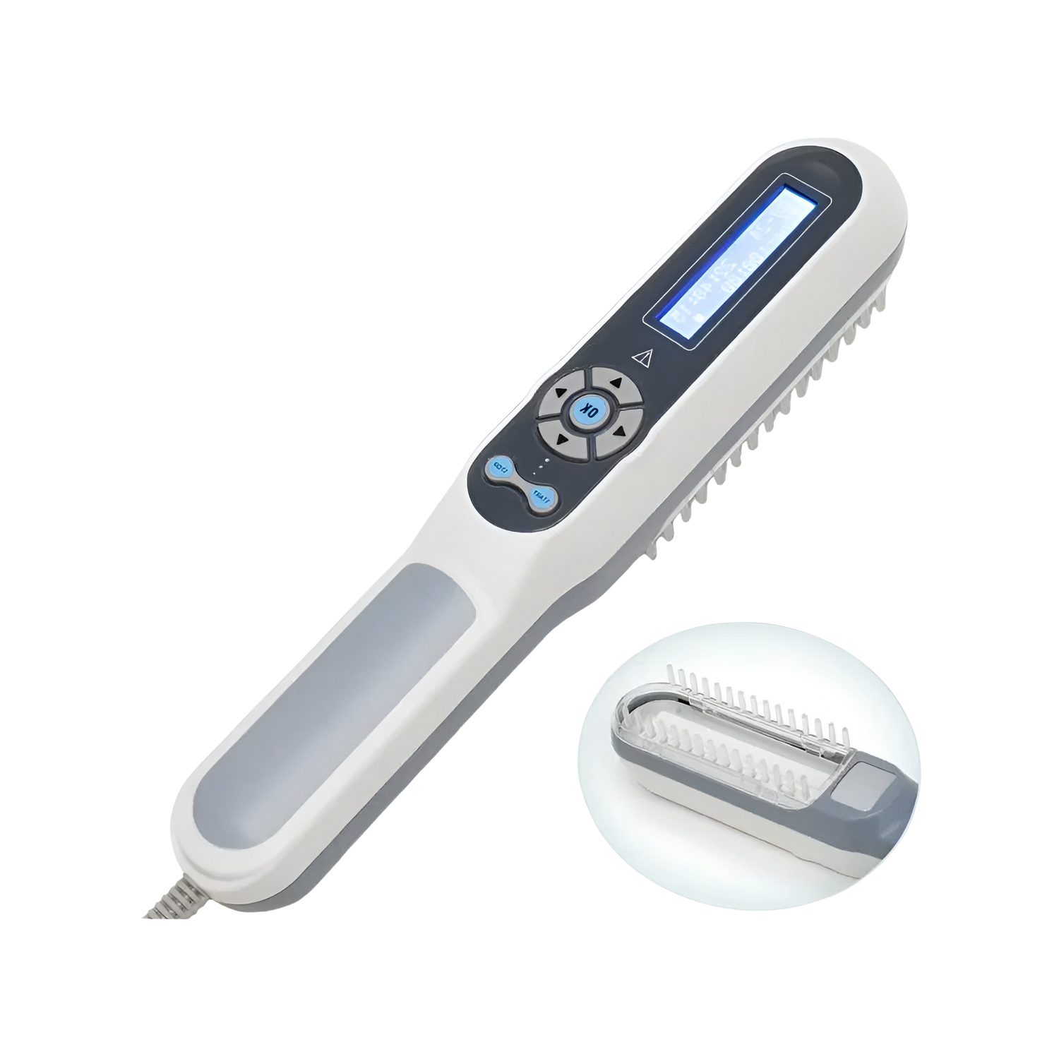 För mycket effektiv behandling av Psoriasis, Vitiligo och Eksem Dermatitis på mindre ytor av kroppen. Med den tillhörande avtagbara kammen är den även extra lämplig för Psoriasis i hårbotten.